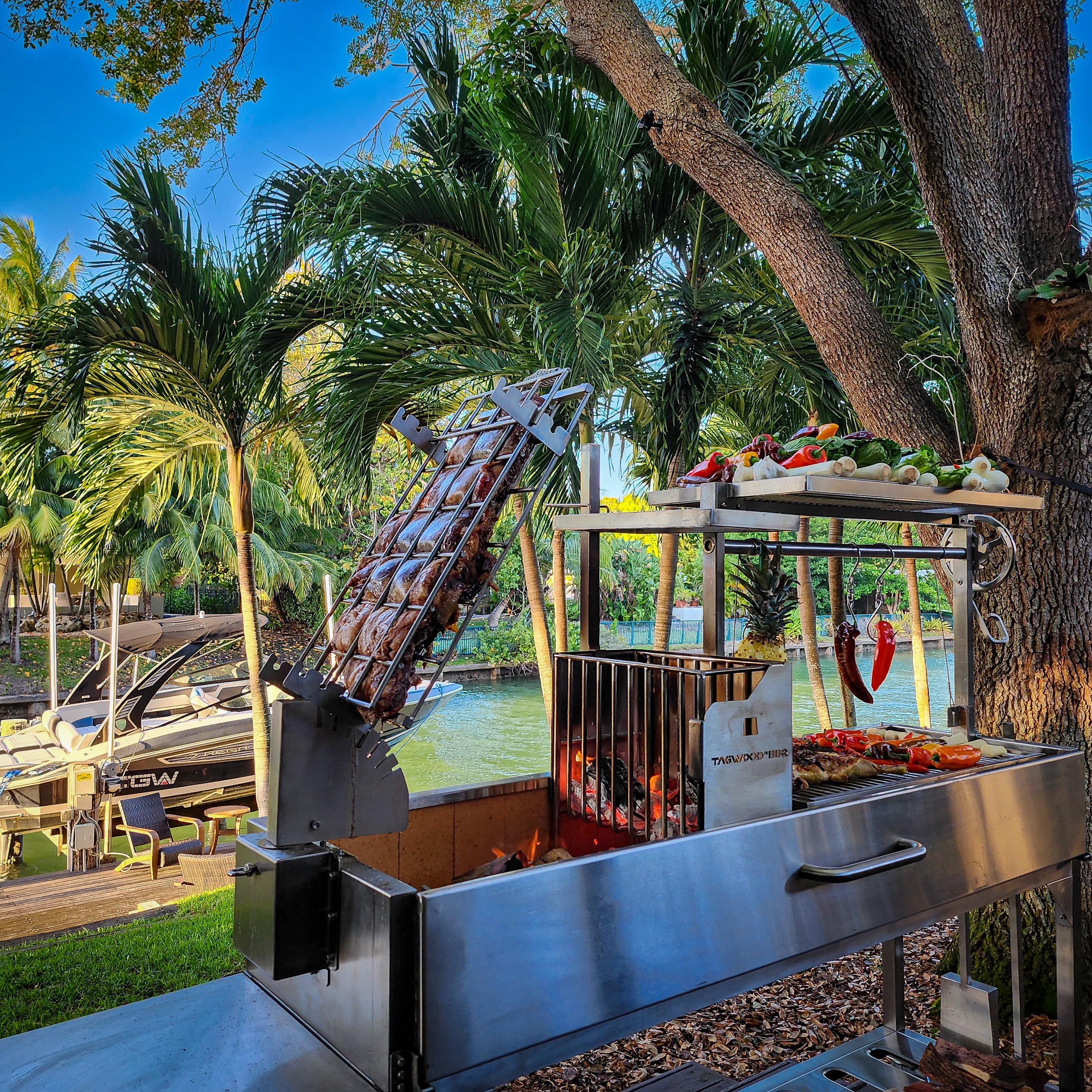 Estoy absolutamente enamorado de mi nueva Tagwood. La parrilla es tan estupenda como el servicio al cliente. Me explicaron cada detalle para encontrar la parrilla que se ajustaba a mis necesidades. La parrilla está construida como un tanque. El brasero facilita y hace conveniente tener brasas calientes listas cuando se necesitan. Cocinar a fuego abierto en su máxima expresión.