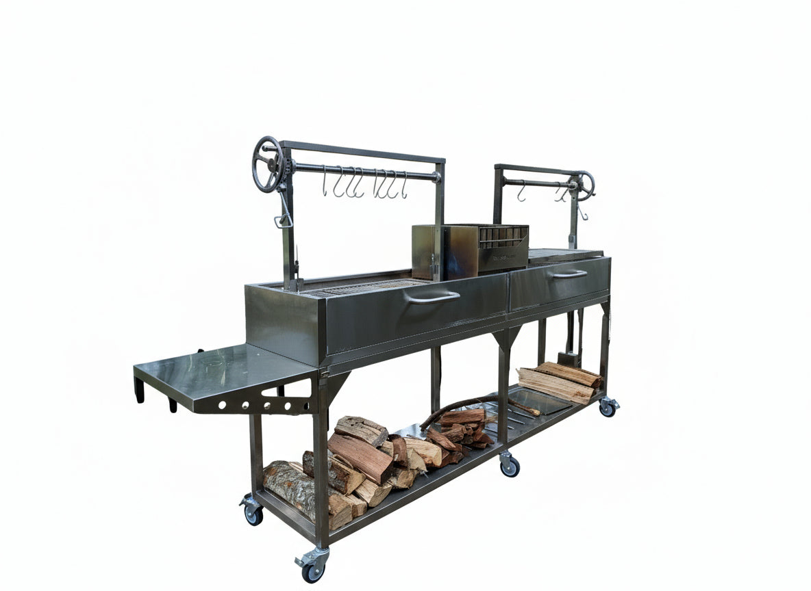 El brasero, también conocido como caja de fuego, agiliza el proceso de encendido de la leña o el carbón, haciéndolo más rápido y requiriendo menos esfuerzo. Garantiza que el fuego se mantenga encendido y lo mantiene alejado de la comida. Ya sea que prefieras leña, carbón o una mezcla de ambos, esta característica se adapta a tu estilo de asar a la parrilla. Para obtener resultados óptimos, se recomienda encarecidamente el carbón en trozos y la leña. Una vez que las brasas se calientan adecuadamente, simplemente se colocan debajo, lo que ofrece una forma sencilla y efectiva de encender el fuego y asar a la parrilla al auténtico estilo de un gaucho.